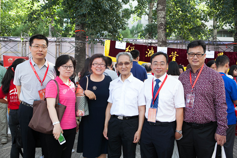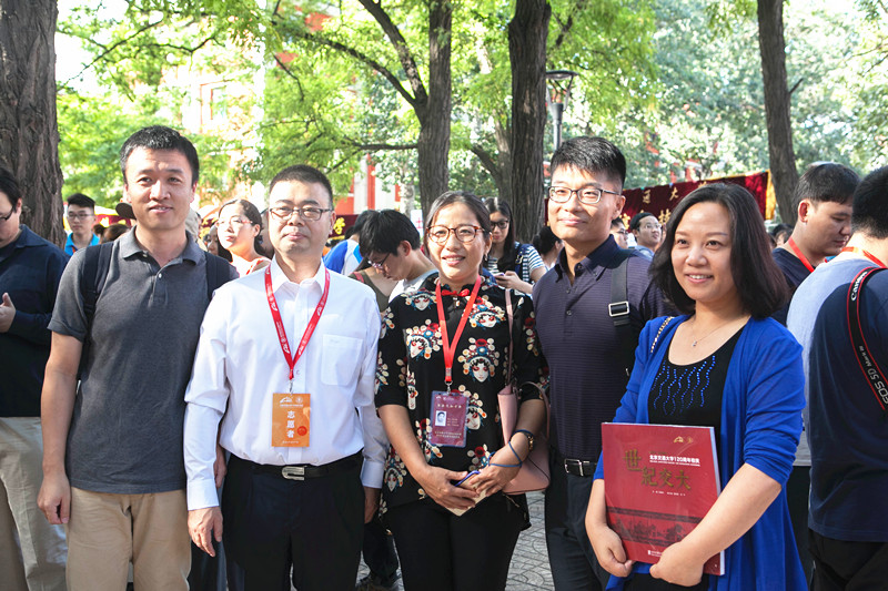 晨光熹微,凉风习习。海内外2000余名校友齐聚南门小树林报到,p站SMT(领导团队)成员及学院各部门工作人员、众位班主任老师、志愿者们在南门小树林报到处热情接待每一位返校校友,并与之亲切交谈。校友们逐一签到,领取“菁菁”“冠冠”学院纪念小熊、带有学籍卡照片的实名胸牌、院友通讯、校庆纪念徽章等返校特别礼物,并纷纷于三面老照片展板处驻足观看、签名留念,校友们相互间亲切问候、热情拥抱,激动与思念之情溢于言表,报到现场处处洋溢着重逢的温馨与感动。返校校友不仅包括毕业三十、二十、十周年的专本硕博校友,还有毕业64年、60年、53年、52年、48年的整班返校的老学长老学姐们,有从美国、加拿大、澳大利亚等国家专程赶回来的兄弟姐妹们,还有带着“交二代”、“交三代”甚至“交四代”回来的大中小朋友们。